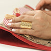 Los productos están fabricados en bronce con baño de oro de 24 quilates, algunas tienen aplicaciones de piedras naturales o cristales de vidrio. Las piedras que manejamos son piedras naturales o cristales de vidrio, no son preciosas ni semipreciosas.
