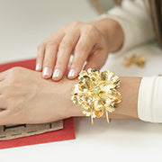 Los productos están fabricados en bronce con baño de oro de 24 quilates, algunas tienen aplicaciones de piedras naturales o cristales de vidrio. Las piedras que manejamos son piedras naturales o cristales de vidrio, no son preciosas ni semipreciosas.