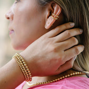 No son causales de garantía: Cambios de color de piezas (brillo, dorado), piezas de vidrio quebradas, piedras naturales con colores y formas diferentes. - Alergias provocadas por los metales en los que son elaborados los accesorios. - Daños en el accesorio por caídas, golpes o falta de cuidado al manipular la pieza. - Rotura o desprendimiento del gancho o base del arete. - Deterioro o cambio en la pieza por uso de materiales como agua salada, cremas, lociones, lacas, bronceadores, perfumes, maquillaje, sudor, cloro, productos químicos en general y los que contengan alcohol.
